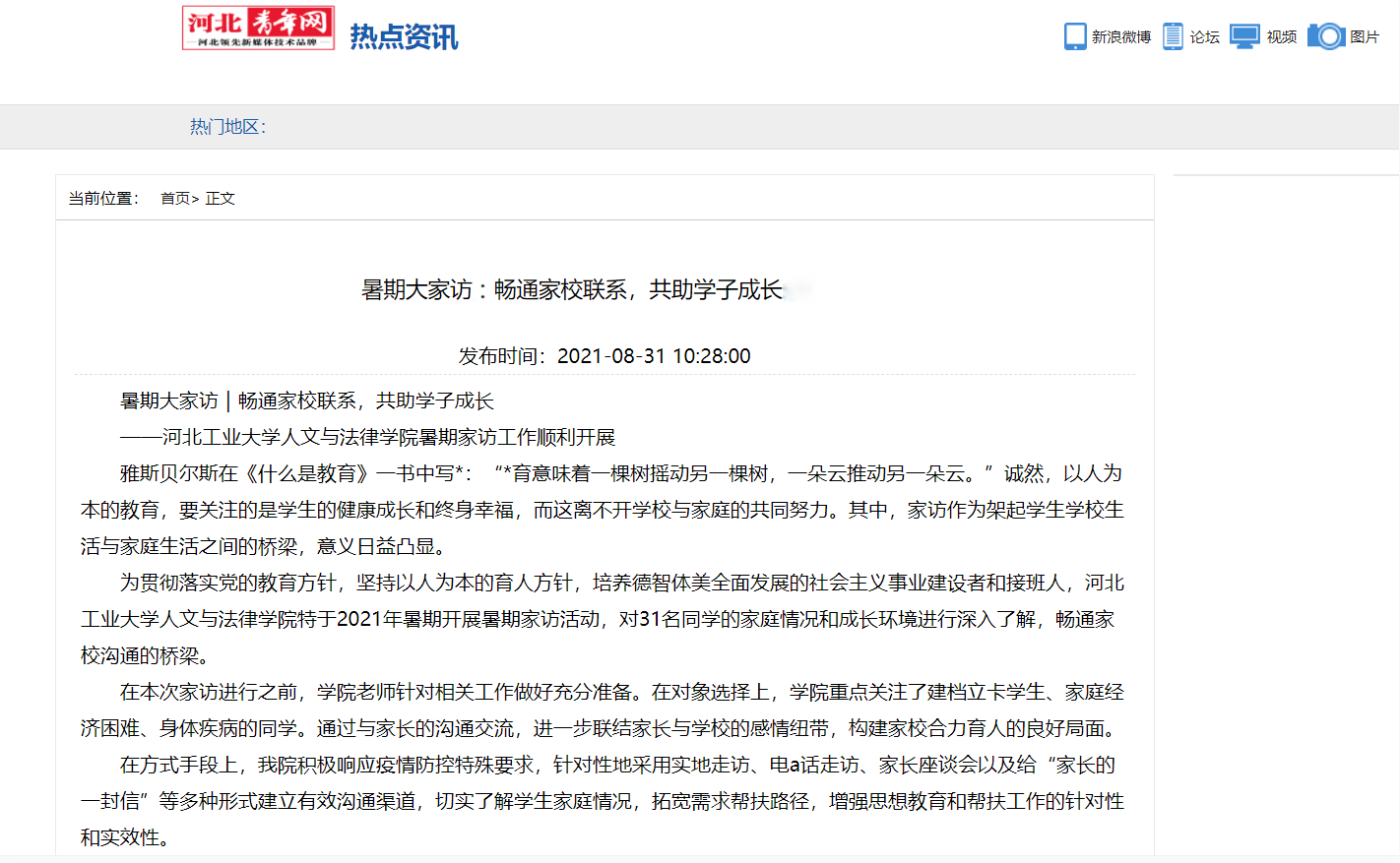 为贯彻落实党的教育方针,坚持以人为本的育人方针,培养德智体美全面发展的社会主义事业建设者和接班人,电竞博彩网站-中国电竞博彩 特于2021年暑期开展暑期家访活动,对31名同学的家庭情况和成长环境进行深入了解,畅通家校沟通的桥梁。