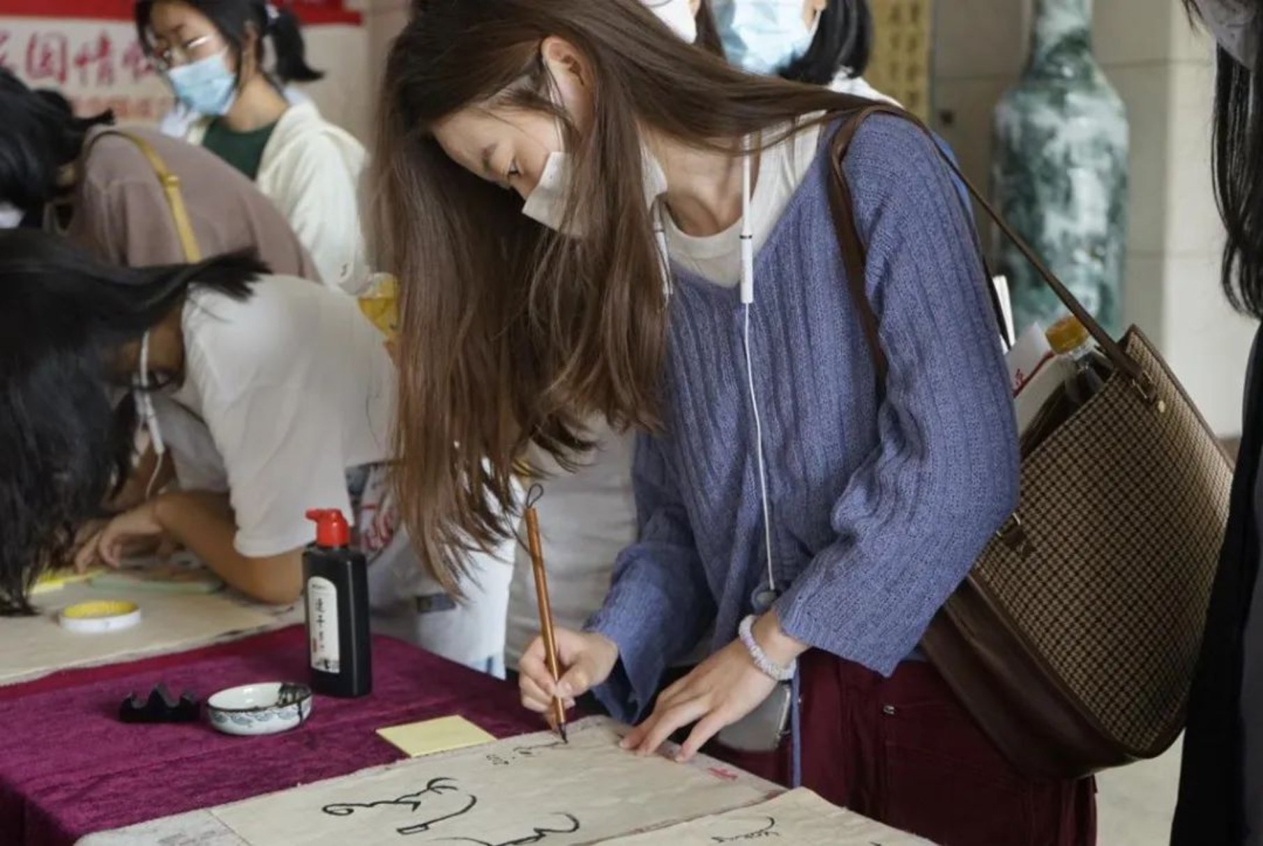 10月1日电竞博彩网站 与经济管理电竞博彩网站 联合举办“心中的‘国’字”主题活动,此次活动面向全校同学开展。电竞博彩网站 各学生党支部、团支部依次有序到场签名,随后在书法社场地留下书法作品并在留言区留下对祖国美好的祝愿。活动期间电竞博彩网站 党委书记白彦刚,院长李艳双以及电竞博彩网站 在东院入住的各位老师到达现场参观,并欣赏同学们的书法作品和同学们一起写下了对祖国的美好祝福,阅读同学们对祖国美好祝福的留言。电竞博彩网站 各党支部与团支部也在现场与党旗团旗合影留念,共同祝愿祖国母亲生日快乐。共有10个学生党支部,42个团支部,总计1000余人参加此次活动。在活动现场,看着一张张“国”字,同学们的心中也涌起对祖国深深的自豪与热爱。