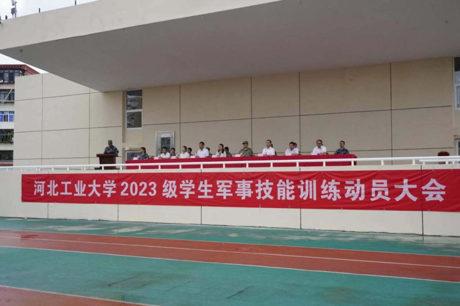 校党委常委副校长段国林同志为军训动员大会作讲话。段校长为经历完寒窗苦读的各位新同学与百廿河北工大的邂逅表示由衷的祝贺,对天津市警备区、红桥区武装部、武警天津总队执勤的两支队伍以及其他各位承训的各位教官表示崇高的敬意和衷心的感谢。