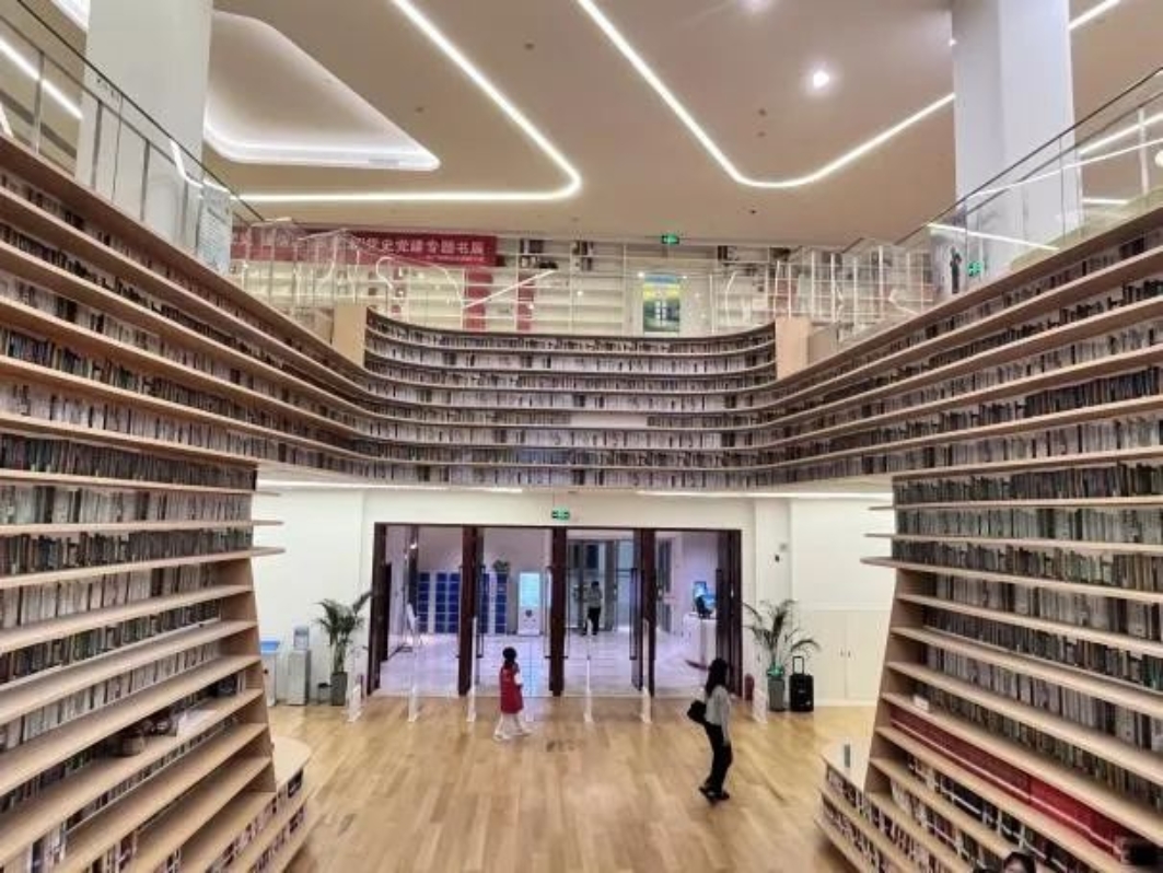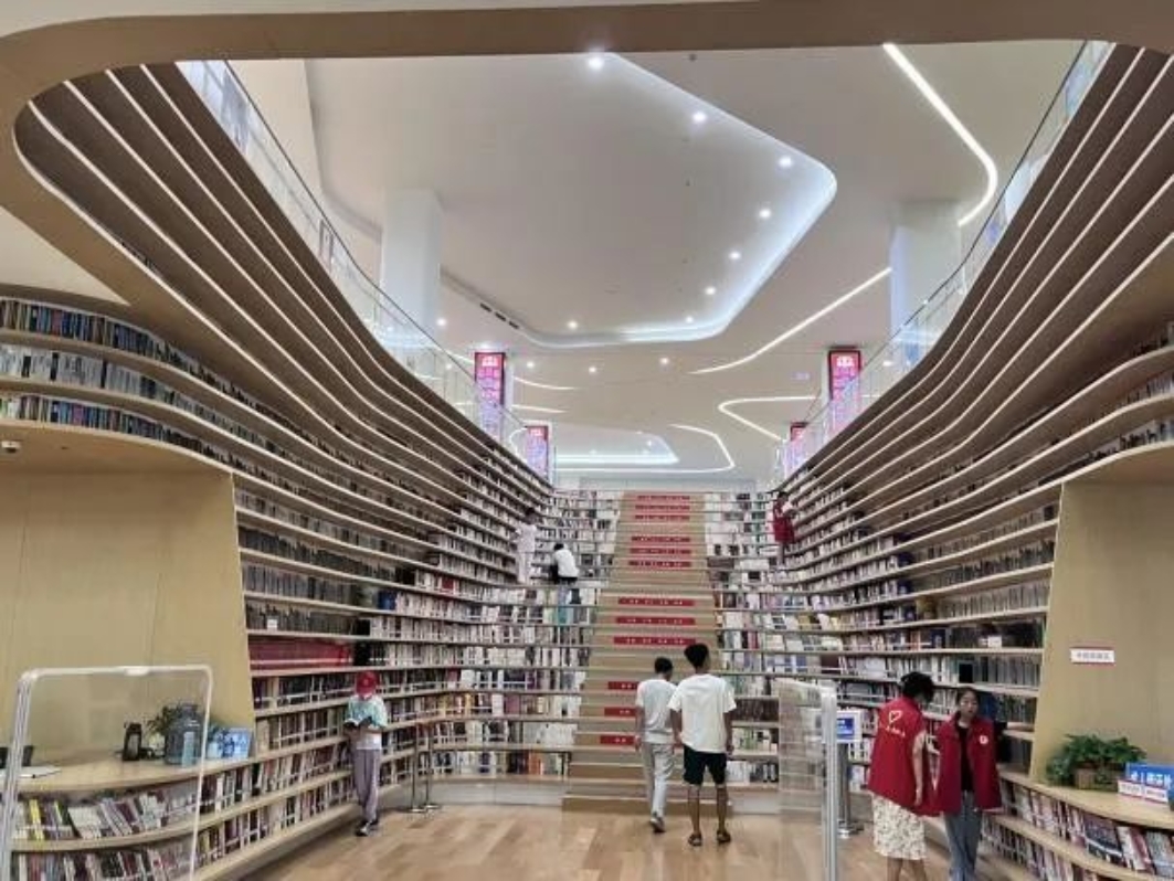 走进民族宫,实践团队来到了大厂县图书馆。在这里捧一本书,拾级而上,席地而坐,如阶梯般的书山在眼前缓缓铺开,“书山有路勤为径”的励志佳句成为现实画面。