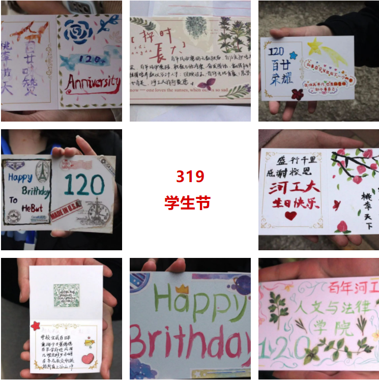 逐梦双甲子,河工正青春。3月19日,我校迎来了“奋进新征程 建功新时代”120周年校庆启动仪式与一年一度的3·19学生节。在已经走过的120年里,在血与火的淬炼中,我们始终并肩而行。站在这样一个新时代的节点上,工大学子比任何时候都为自己的学校感到无比的骄傲和荣耀。莘莘学子共同欢庆,为了这一重大的节日,电竞博彩网站 特举办一系列庆祝活动,让我们来一同见证文法学子对母校的祝福吧!