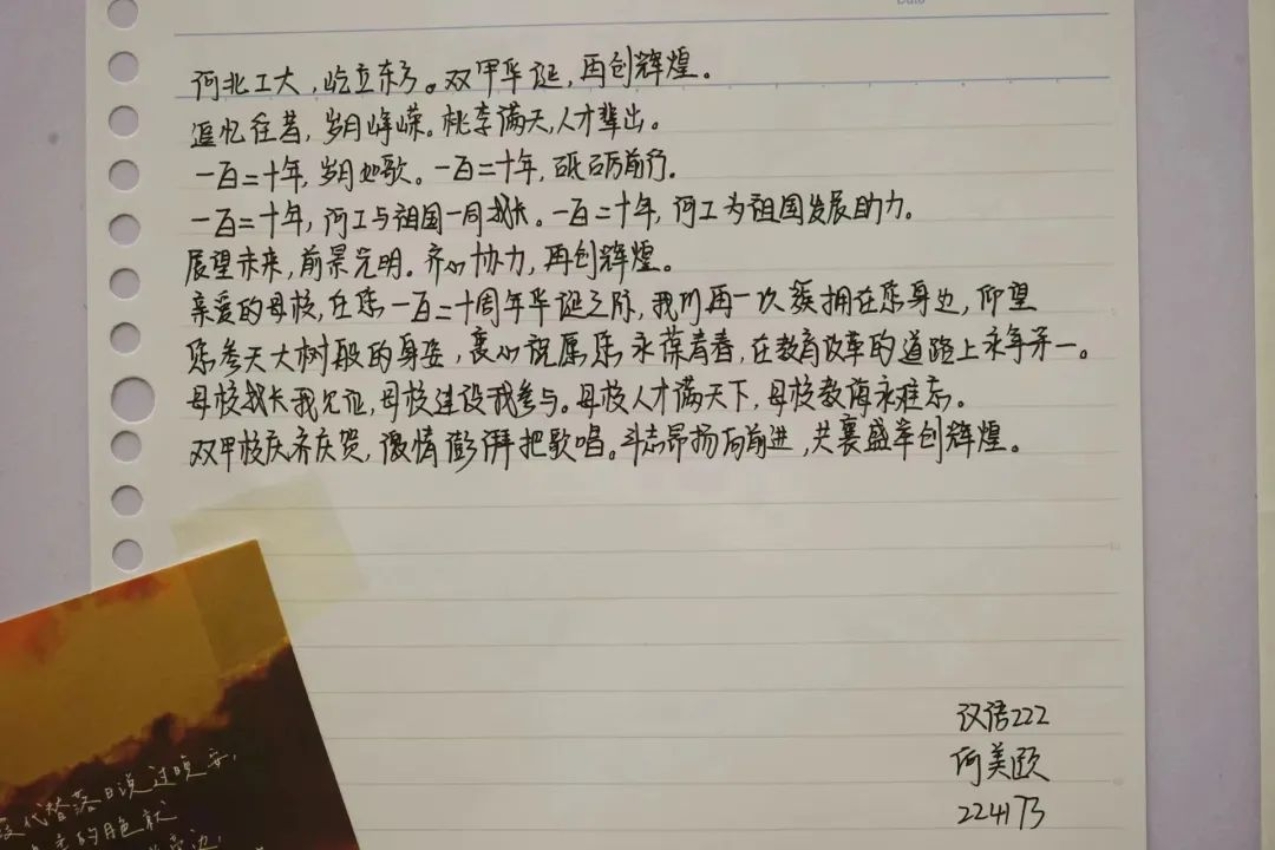一百二十载砥砺前行,初心不改;一百二十载接续华章,再谱新篇。载星辰轮回,谱桃李群芳;载栉风沐雨,未来可期。明世界古今之道,通中华民族之期;承抗大红色基因,传中国世界之声。知识的海洋,文化的殿堂,思想的宝库,精神的圣地,用真挚文字为母校送上真诚的祝福,祝愿母校积历之厚蕴,宏图更展,继续创造辉煌!