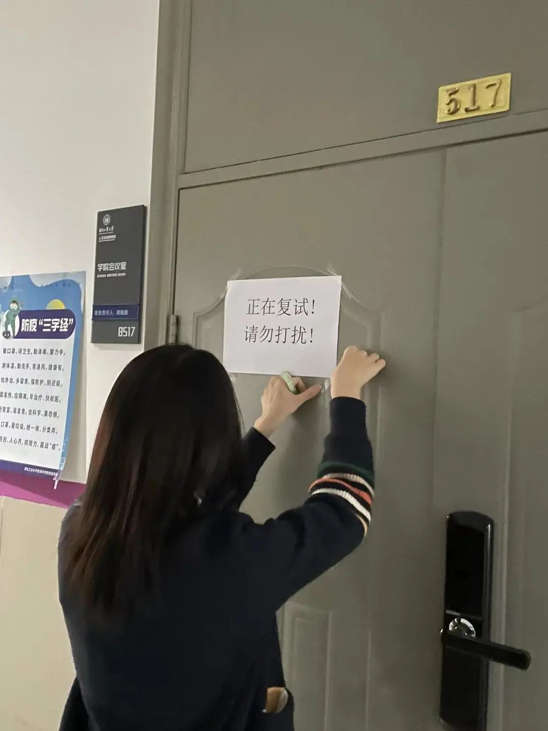 此外,在做好疫情防控常态化管理工作的同时,电竞博彩网站 还积极在线上线下与同学们沟通交流,引导大家做好压力调试。这有效缓解了同学们在复试前的紧张焦虑情绪,确保学生能以良好的心态顺利完成复试。