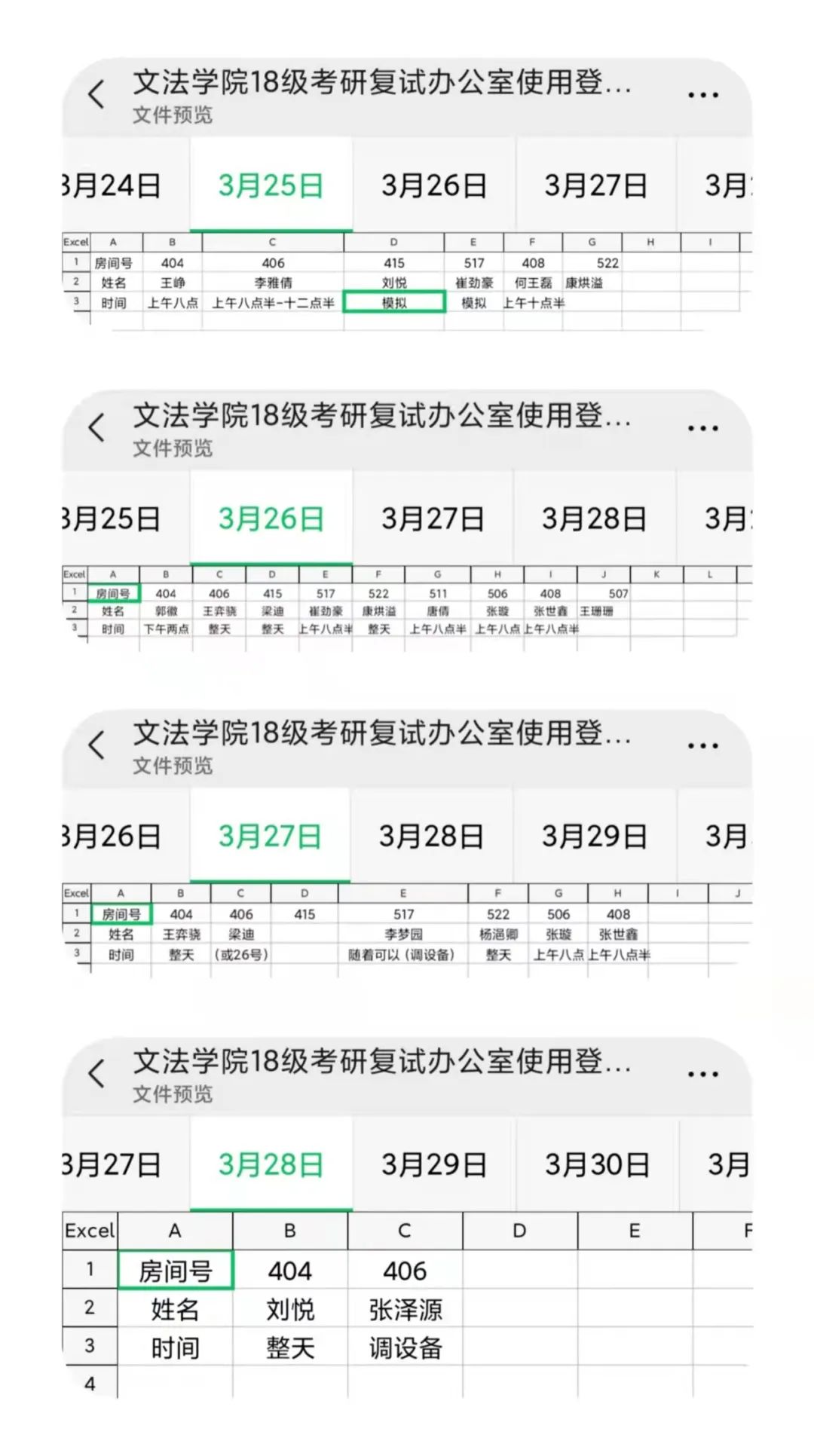 为了给考研学子保驾护航,毕业班辅导员王鑫老师统筹安排,指导学生会开展工作,将电竞博彩网站 楼的教师办公室、会议室等房间给复试同学使用,并检查了网络设备以便确保复试期间的网络平稳畅通,同时还贴心地为同学们配备了三脚架、手机支架、打印机等设备。18级团支书何王磊、陈鑫阳也积极配合,主动承担起为复试同学安排复试时间,考场分配等工作。