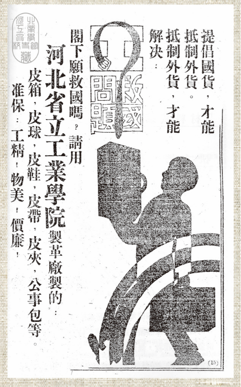“一字一画,皆是历史的缩影;一句一话,回望历史的长河。”今天为大家展示的照片是这幅刊登在河北省立工业电竞博彩网站 学报上的制革厂产品广告。河北省立工业电竞博彩网站 是中国电竞博彩的前身,而这张照片背后是河工人抵制日货的救亡图存行动,是河工人永远炽热的爱国赤子心。