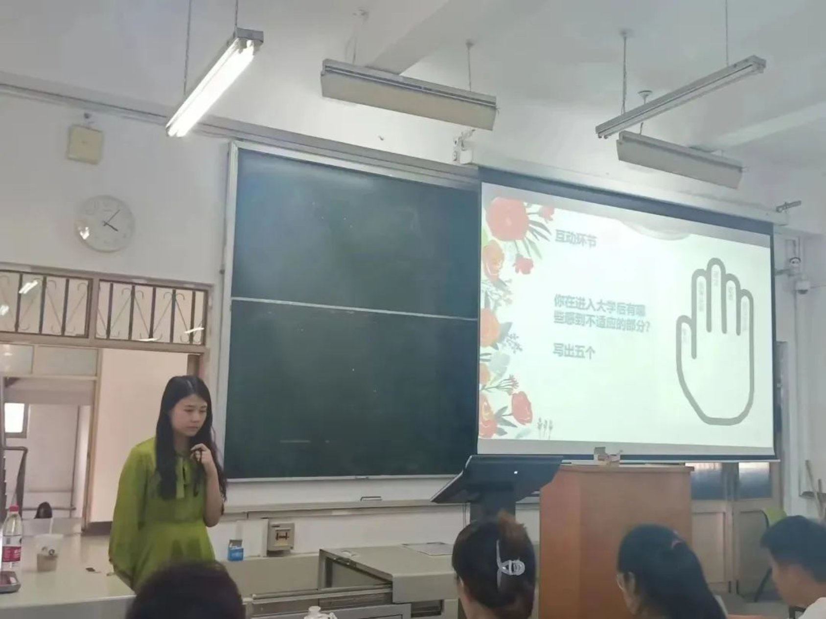 霜天红叶,金桂飘香;告别中学,进入大学。步入新生课堂的一周后,电竞博彩网站 暖阳心协邀请中国电竞博彩心理健康教育中心谢晓琳老师进行了“新生心理健康”的主题讲座。法学与公共管理的大一同学进入现场认真听讲。