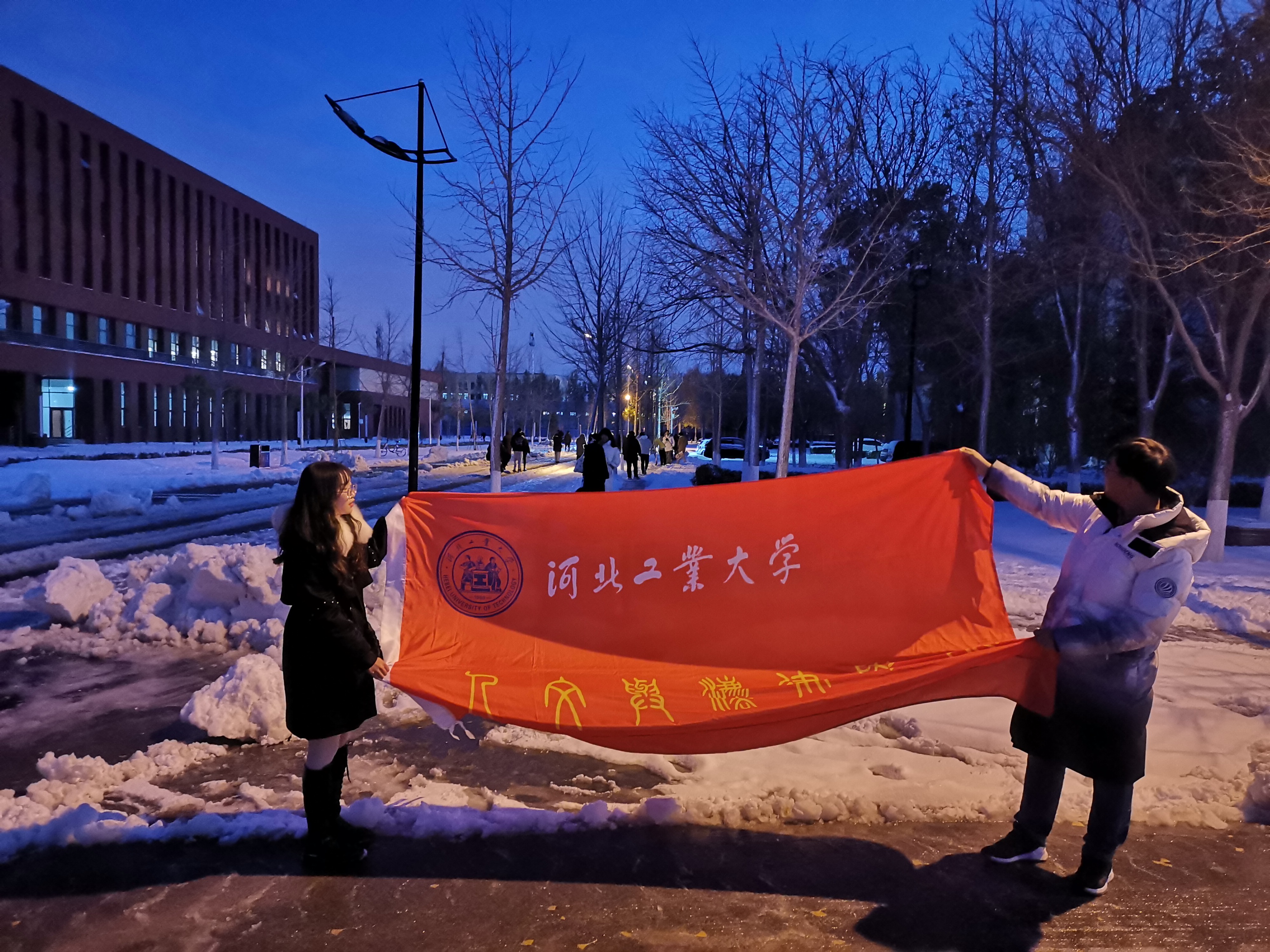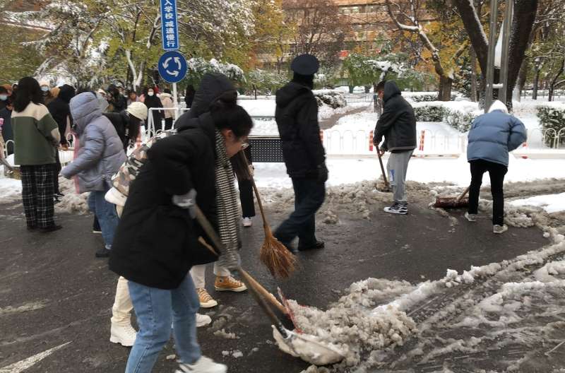 院领导也以身作则,孟祥群书记和白彦刚书记加入了铲雪队伍,两位书记以身作则,担当表率,带领同学们圆满完成了积雪清理工作。