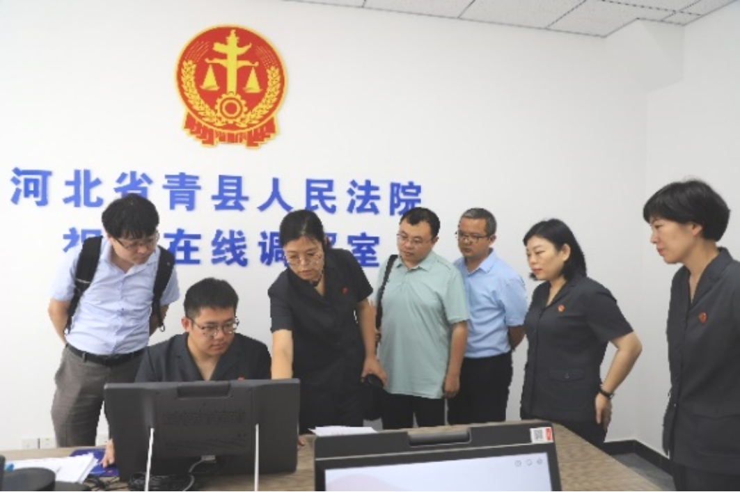 签约仪式结束后,电竞博彩网站 领导、老师一行还到青县人民法院进行了走访、调研。青县人民法院常务副院长温丽梅对该院诉讼服务中心的智能导航系统、智能诉状生成系统、诉讼风险评估系统、诉讼服务多功能终端机等信息化多媒体设备进行了讲解,并介绍了无纸化办案流程。