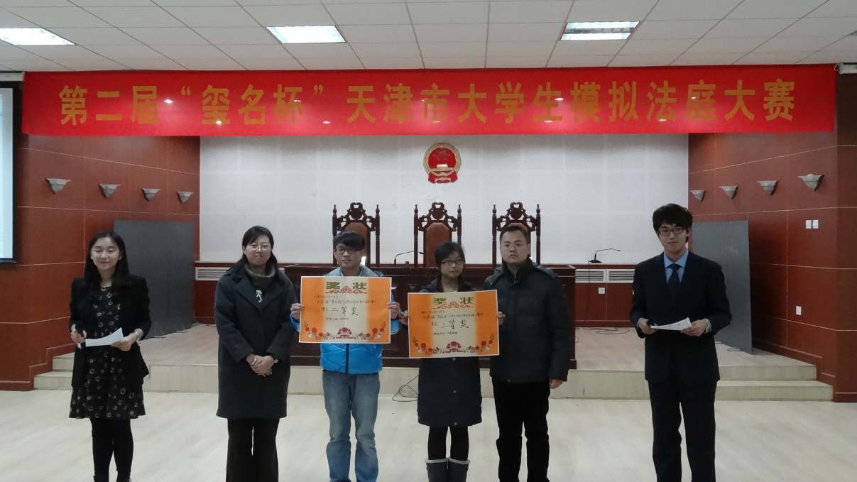 这是蒋冰晶老师在2013年9月的天津市模拟法庭比赛中为获奖选手颁奖的一张照片。谈及到这张照片时,蒋老师笑靥如花。老师告诉我们,一直以来学校的实践课程体系都较为完善,那次的天津市模拟法庭大赛是由我校的法律协会承办的,举办地点亦设于我校。河工学子们通过学习“模拟法庭”课程,充分了解了模拟法庭的程序,在比赛中取得了优异的成绩。