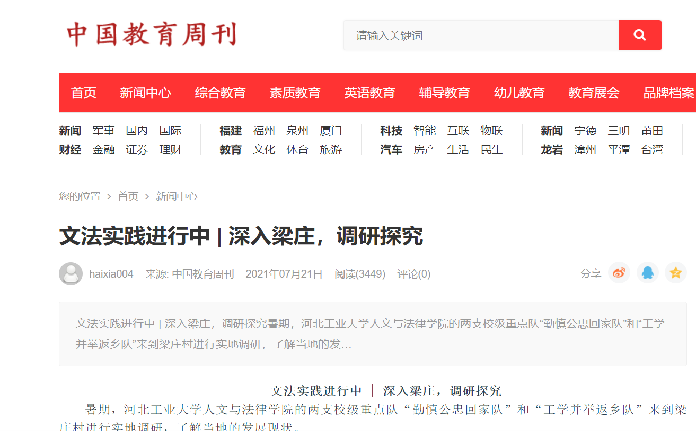 在上一学年的社会实践组织过程中,电竞博彩网站 师生探究出一条研学结合、具有文法特色的社会实践道路。我院结合专业特色,在专业教师的指导下将课堂所学落实到实践过程中。比如,在法学专业老师的指导下,爱法创新小队进行创新创业法学教育系列探究课题;汉语专业同学在孙伟龙国家项目支持下开展古汉语文化研究课题;公管专业同学聚焦区域协调发展热点开展相关的社会实践课题。社会实践与所学专业知识高度的结合层次在逐渐加深。