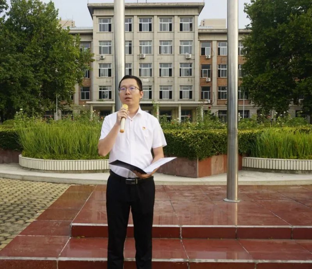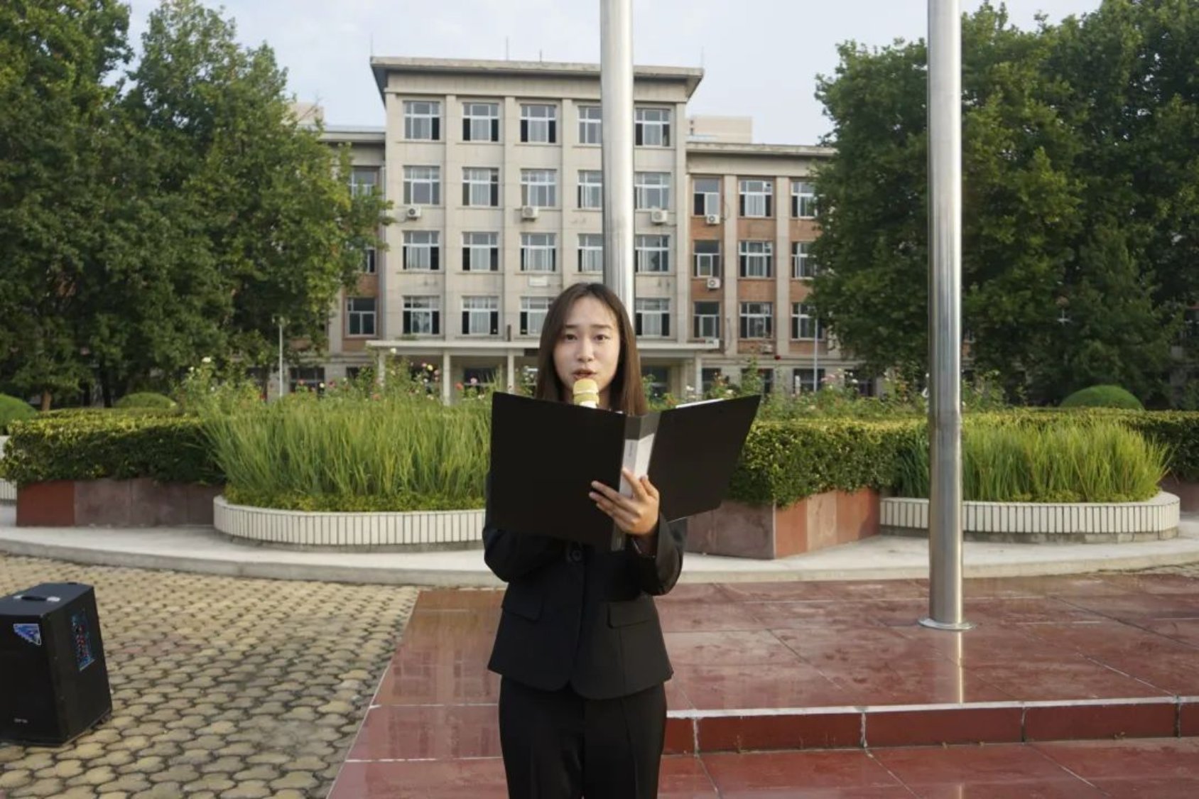 迎着清晨的阳光,学生代表公共管理专业231班史哲宜同学进行了国旗下的演讲。她代表文法学子作出三点承诺:一是承诺会做好时间管理,“只争朝夕”;二是承诺遇到困难会无所畏惧,迎难而上;三是承诺立鸿鹄之志,破浪前行。