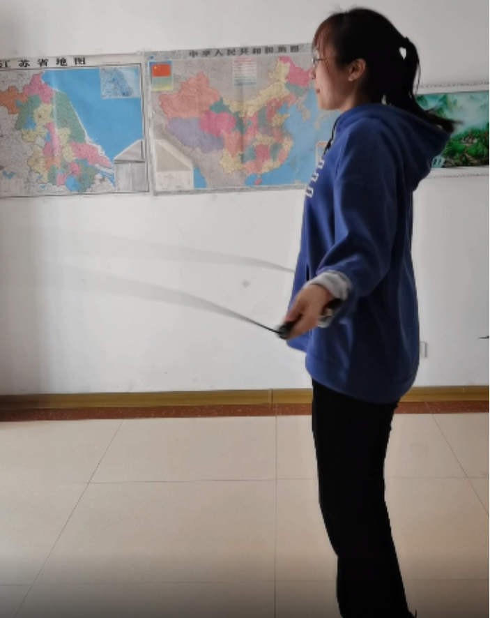 跳绳:双脚起跳,跳绳自双脚下沿身体额状轴旋转360度为一周算一个,计一分钟内完成次数。视频中一个个跳跃的身影,跳跃出青春的活力,展现出文法学子的魅力与昂扬向上的精神。