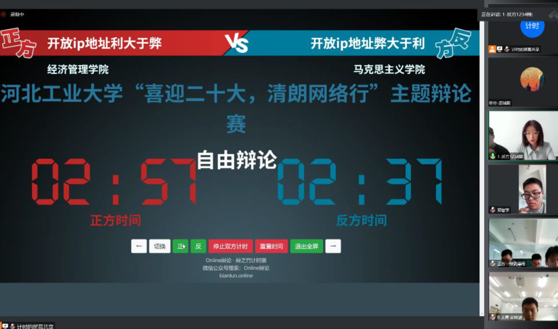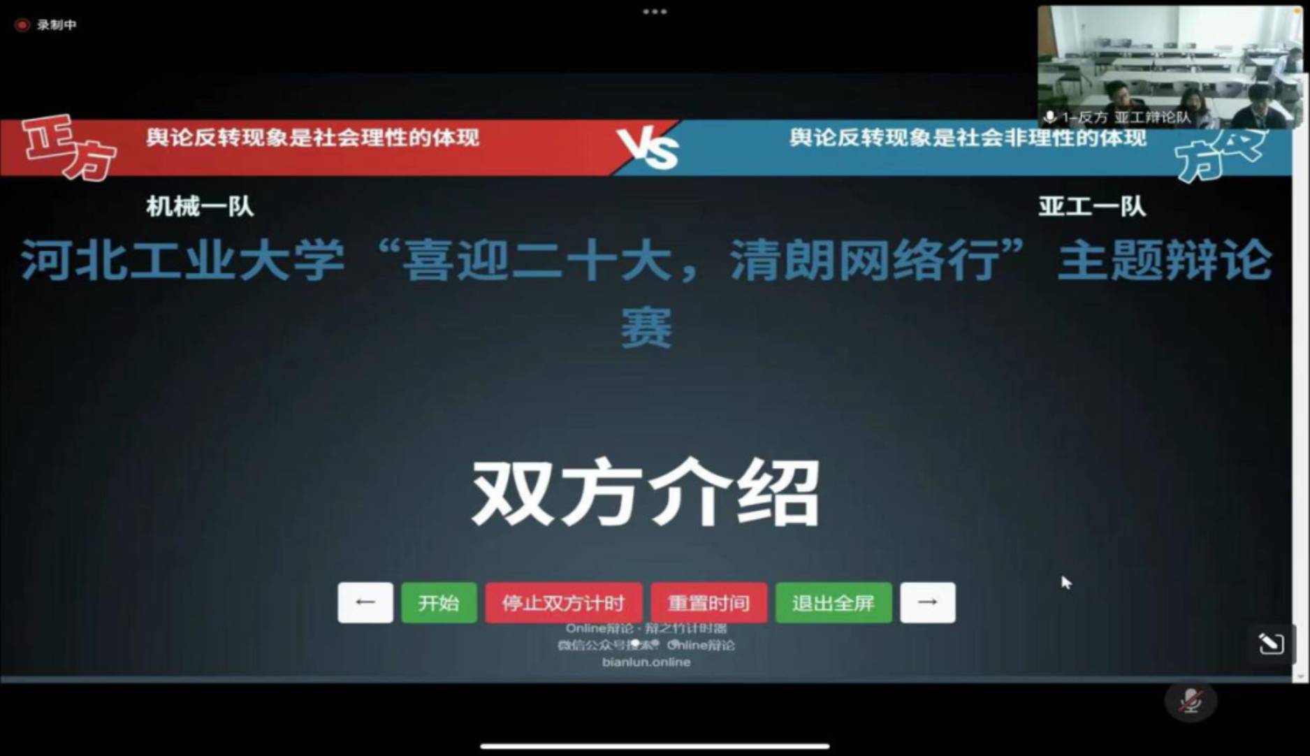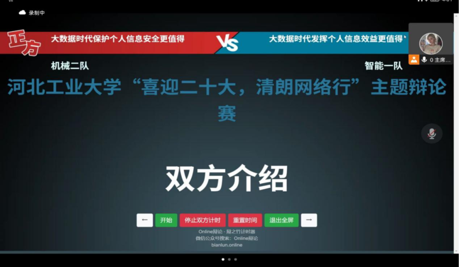 在国庆假期,喜迎二十大之际,为向全校学生宣传文明网络思想,让同学提高网络文明意识,同时也为促进辩论文化在河北工大的传播和发展,丰富同学们的大学生活,提升学生们的综合素质,展示大学生卓越的精神风貌,“喜迎二十大,清朗网络行”主题辩论赛应运而生。