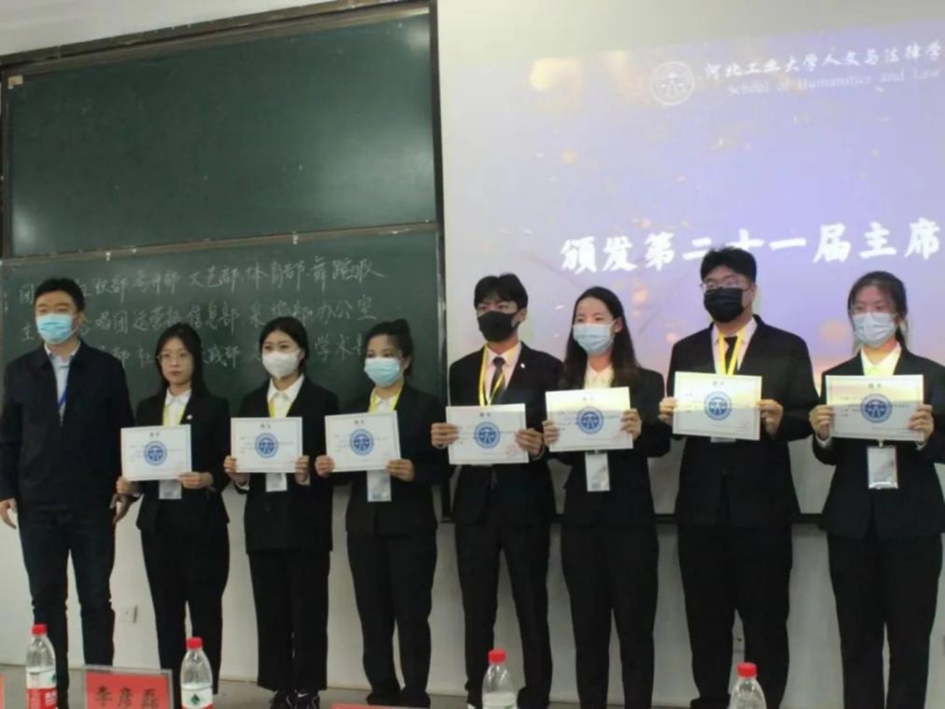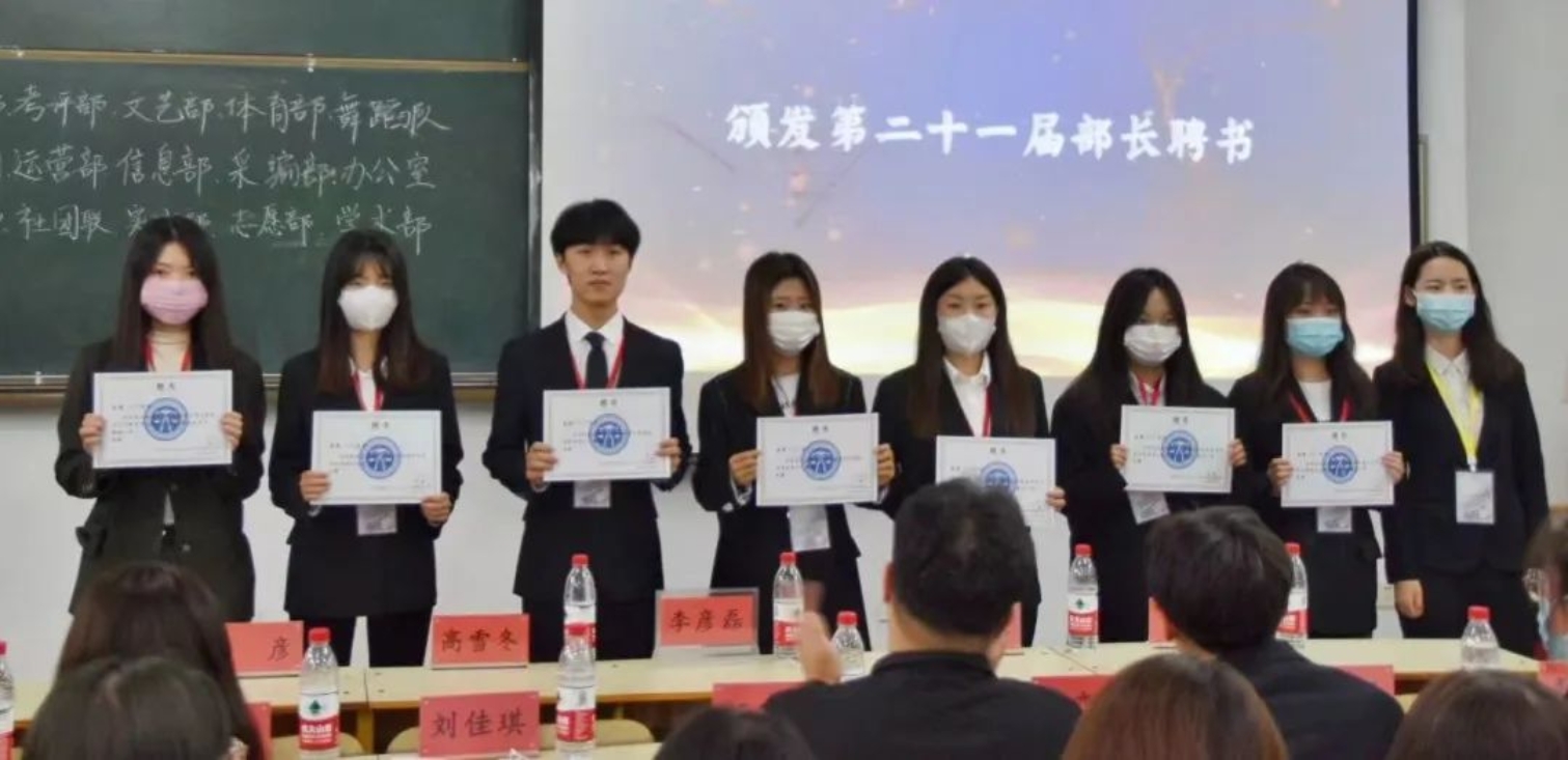 接下来就是激动人心的颁布聘书的时刻。由李彦磊副书记为第二十一届主席团颁发聘书,第二十一届学生组织主席团成员为李云苇、杨宇凡、张想、刘佳琪、李明昱、纪弈舟、韩新泽。