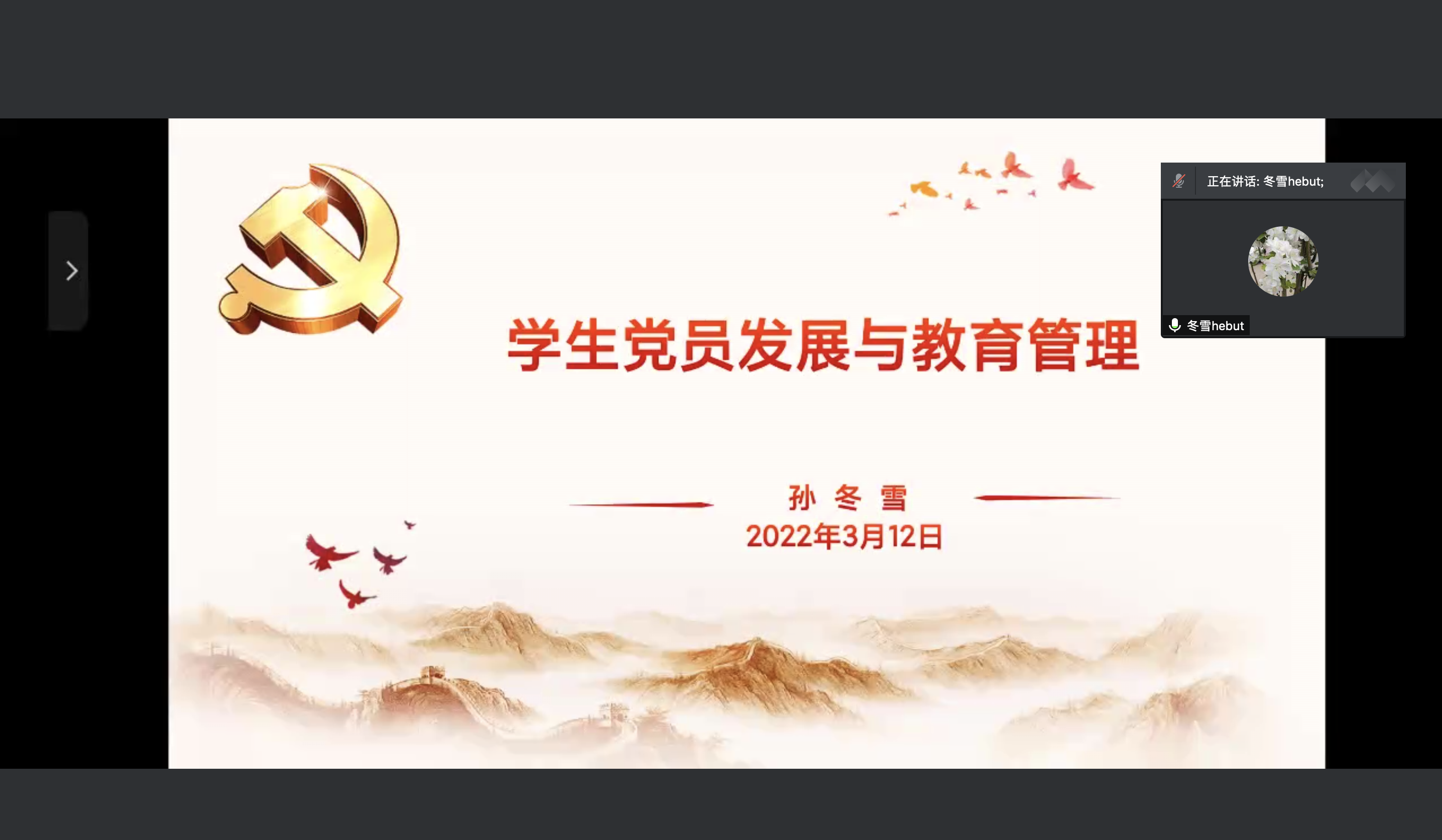 (图文来源 汉语182班纪文馨)为提升电竞博彩网站 学生党员骨干的业务操作能力,推进电竞博彩网站 学生党支部建设, 3月12日下午,电竞博彩网站 邀请组织部孙冬雪老师在线上为电竞博彩网站 学生党支部开展业务培训。此次培训会由许彦老师主持,电竞博彩网站 党委副书记李彦磊书记、全体学生党支部书记及支部委员参加会议。