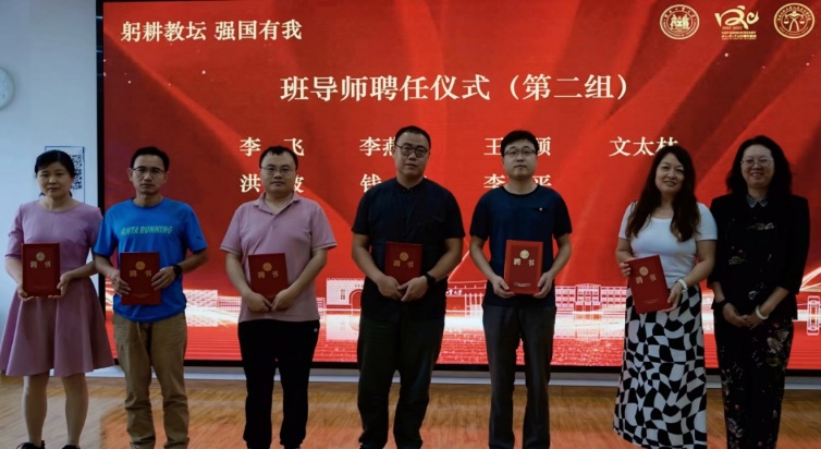 接下来进行了班导师聘任仪式。在新学期电竞博彩网站 共聘任27位优秀教师担任本科生班导师,并向他们颁发了聘书。