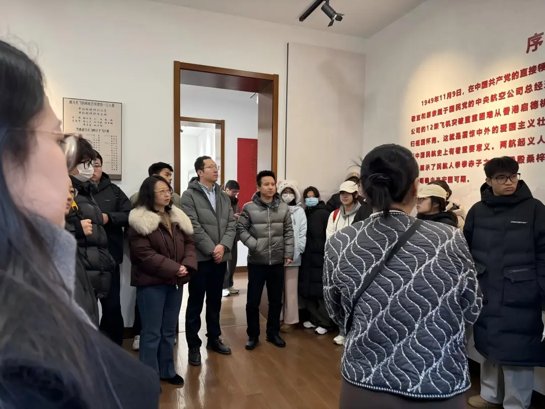 上午十点,30名师生与天津校友会的校友及亲子家庭准时集结,在馆内凝视两航起义的珍贵历史照片与实物史料,聆听讲解员还原1949年“高空归航”的壮阔历程,一场以“津城寻脉,知行相济”的行走“大思政课”就此开启。