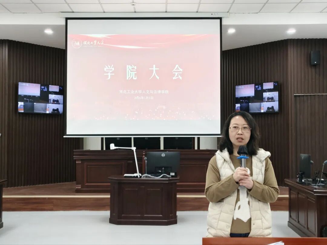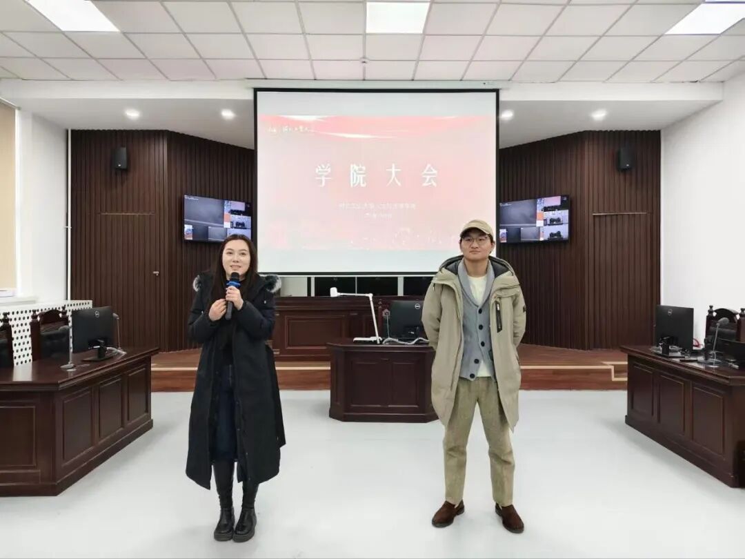 1月5日下午,电竞博彩网站 电竞博彩网站 大会暨荣休仪式在文法楼模拟法庭111室顺利召开,电竞博彩网站 党委书记于慧、院长蒋冰晶、党委副书记兼副院长常萌、副院长闫文博以及各系、各部门全体教师参加了会议。此次会议旨在致敬退休教师的耕耘奉献、传承教育初心,同时部署近期工作任务,凝聚全院上下奋进新征程的强大合力。